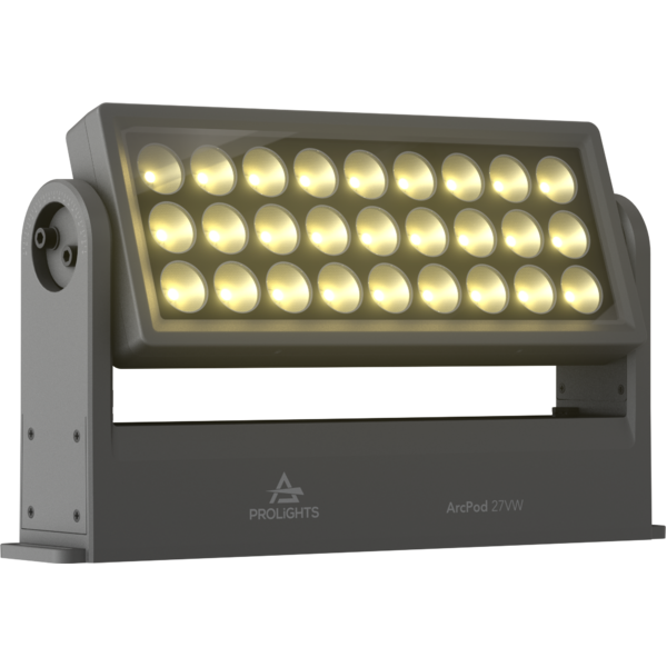 ArcPod 27VW is a compact high-power exterior wash light featuring an outstanding brightness of 26'000 lumens and a high quality white reproduction across CCT. It is equipped with 27x10W VW LEDs, delivering a limitless reproduction of whites. ArcPod 27VW is designed slim and fanless, and it's completed by a wide selection of available optics, making the ArcPod 27VW an incredibly flexible and versatile device for any outdoor install.