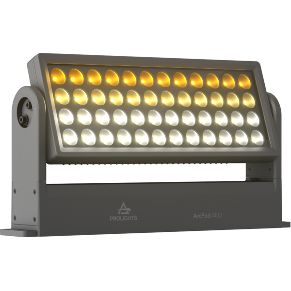 ArcPod 48Q is a compact high-power exterior wash light featuring an outstanding brightness of 23'000 lumens. It is equipped with 48x10W RGBW / FC LEDs, delivering a limitless reproduction of colours and whites. ArcPod 48Q is designed slim and fanless, and it's completed by a wide selection of available optics, making the ArcPod 48Q an incredibly flexible and versatile device for any outdoor install.
