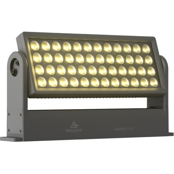 ArcPod 48VW is a compact high-power exterior wash light featuring an outstanding brightness of 46'000 lumens and a high quality white reproduction across CCT. It is equipped with 48x10W VW LEDs, delivering a limitless reproduction of whites. ArcPod 48VW is designed slim and fanless, and it's completed by a wide selection of available optics, making the ArcPod 48VW an incredibly flexible and versatile device for any outdoor install.
