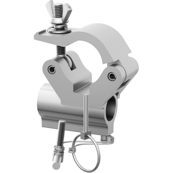 Aluminum clamp for 28 mm spigot (ECLFRSPG), equipped with safety pin.
