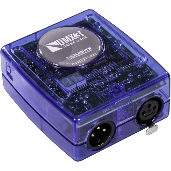 USB-to-DMX interface (512 DMX OUT and 512 DMX IN).