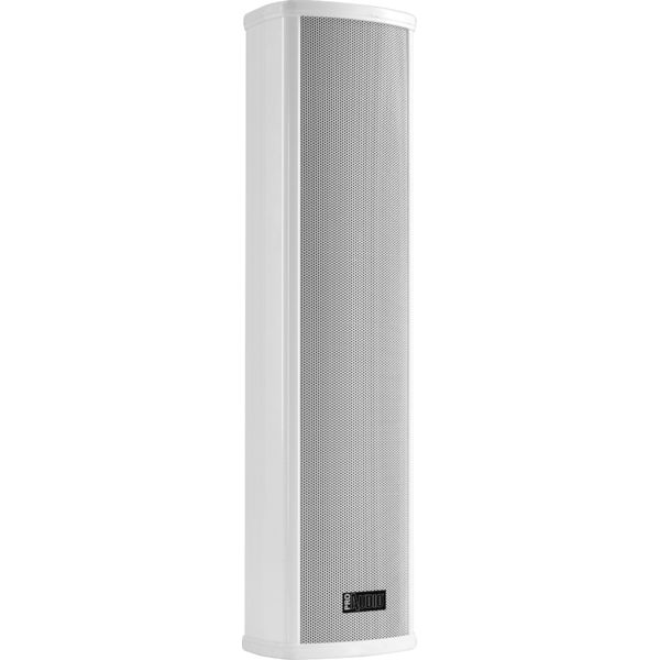 Aluminium column speaker, reproducing speech with great intelligibility.