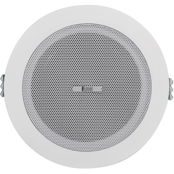 Micro speaker with a closed rear cap. Ideal for high-fidelity sound reproduction designed for ceiling mounting.