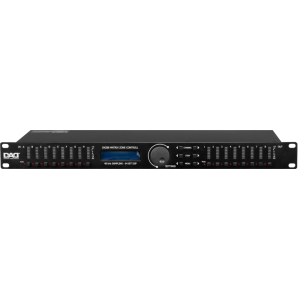 The DXZ series processors combine an intuitive user interface with professional audio processing standards. Their economic convenience makes them ideal for rental companies and for various installation applications. All DXZ products feature 48 kHz sampling rate, a dynamic range of 110 dB (A) at inputs, 114 dB (A) at outputs and a maximum input level of + 23 dBu. The DXZ26 audio management system features 2 inputs and 6 outputs, while the DXZ48 system has 4 inputs and 8 outputs, each with 10 Parametric EQ bands per output and a frequency range up to 40 kHz. Parameter management is It takes place through an intuitive user interface with real-time monitoring on PC through a built-in Ethernet connection (DXZ48 - DXZ88), (while through USB connection for the DZX26 model). The analog input allows voltages up to 10V RMS (+ 23dBu) and provides a value at the top of the category. The outputs are capable of delivering a signal up to + 12dBu (3.084V RMS), which is enough to drive even the most demanding power amplifier. The DXZ88 Matrix Zone model provides the same DXZ series DSX functionality in a 8-in-8 master mixer with full processing on each channel.
