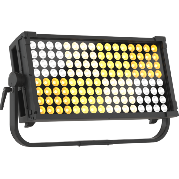 The EclPanel IPHard2x1 is a 2x1 format IP65 Hard Light, featuring an LED source optimized for long throw film applications. This unit is designed to deliver quality lighting in all weather conditions. Its optical system, equipped with a 6-color LED array and collimator  lenses controllable in 8 sections, producing a 20° native beam angle. This configuration enhances lux intensity for long throw uses and broadens the light spectrum, resulting in superior light quality. The EclPanel IPHard can be transformed into a soft light source by attaching optical modifiers to its accessory points.