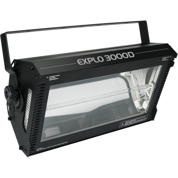EXPLO3000D is an high-impact DMX strobe equipped with a 3000W Xenon lamp, conceived to reproduce astonishing visual effects. The advanced cooling system and lamp control circuit perform a continuous operation with light ON to be used as a high power blinder.