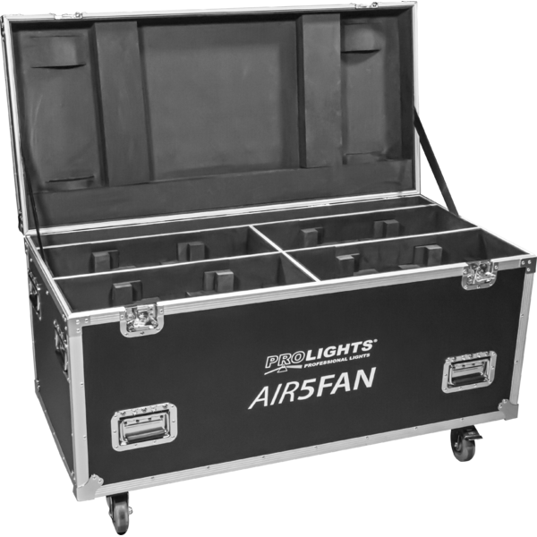 Flight case with internal compartments designed to contain 4 pcs of AIR5FAN.