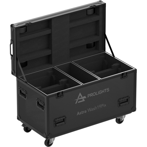 Flight case with internal compartments designed to contain 4 pcs of ASTRAWASH19PIX / JETWASH19.