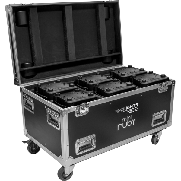 Flight case with internal compartments designed to contain 6 pcs of MINIRUBY.