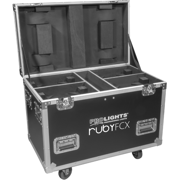 Flight case with internal compartments designed to contain 4 pcs of RUBYFCX.