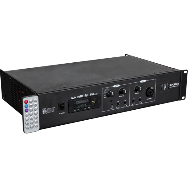 MPC400A is a multi-purpose stereo amplifier 2 x700w/4 Ohm with multi-media player and FM tuner.