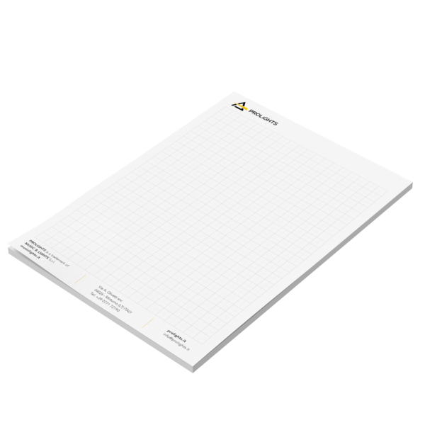 Block Notes format A4 composed of 50 sheets with PROLIGHTS logo.