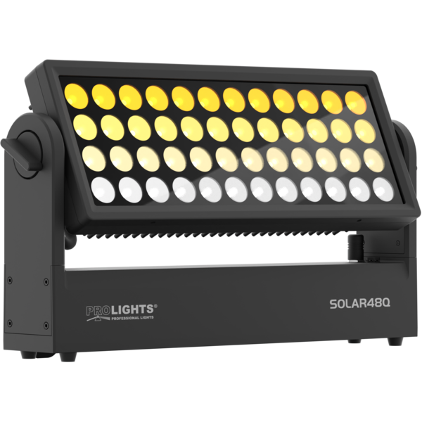 Solar 48Q is a compact fan-free outdoor wash light featuring an outstanding brightness of 22'760 lumens. Equipped with 48x10 W RGBW full-colour LEDs all delivering superior colour mixing. Featuring a slimline styling, multiple interchangeable optics through magnets, asymmetrical filters which combined, make the Solar 48Q an incredibly flexible device for indoor and outdoor use. Whilst highly-powerful, the Solar 48Q is also completely silent.