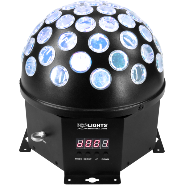 • >Effect type: rotating LED sphere, CW and CCW rotation. Multi-colored razor-sharp beams through the 56 lenses.