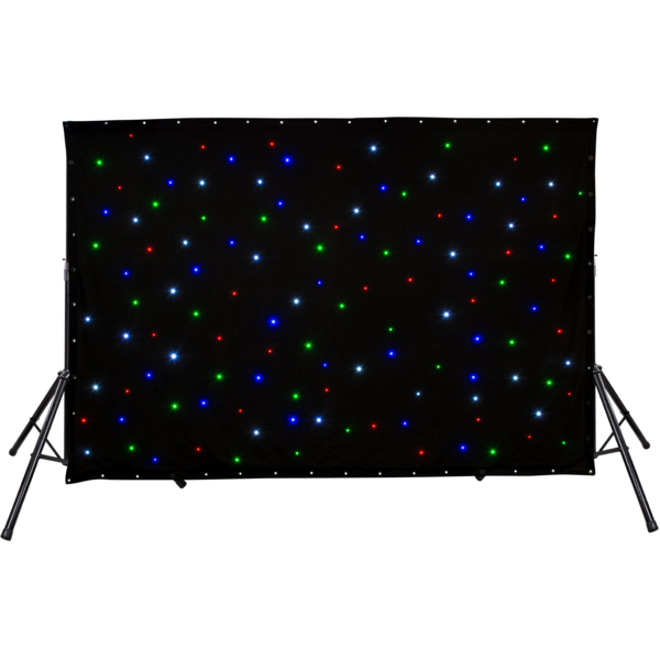 STARDRAPERGBW is a LED curtain created to emulate light backdrops. STARDRAPERGBW is built in a fireproof textile material with 120 RGBW SMD LED (30 for each colour), in 300x200 cm modular sizes. Power supply and control driver are built inside an external box (included) which allows for the setting up of the DMX address and allows the user to run a wide range of auto-show, Sound-show or static patterns. STARDRAPERGBW is an innovative scenographic solution, usable in a wide range of applications such as stages, clubs, weddings,  ceremonies, showroom and conference. STARDRAPERGBW is packed in a nylon bag with drape, control box and the mounting set included.