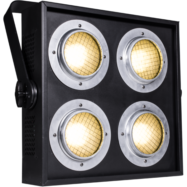 SunRise 4 is the first blinder with LED source which equals the brightness of conventional projectors based on the DWE 4x650W halogen lamps. It's equipped with 4x100W COB LED 3.000 K and an optical glass that is able to reproduce the projection angle, colour temperature, dimmer ramp and brightness of a fluorescent bulb. The electronic SunRise 4 also offers many other key points such as the option to control each LED independently in pixel2pixel and the user can take advantage of a dedicated channel for the strobe in addition to the selection of different dimmer curves.