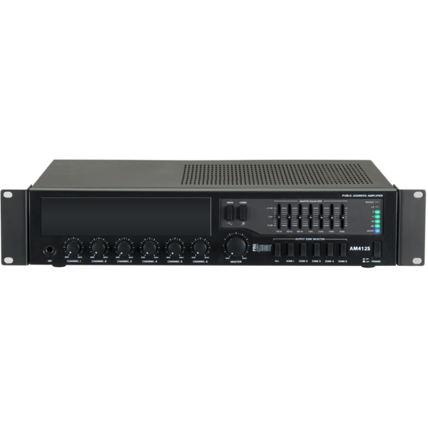 Amplificatore mixer a 5 zone con equalizzatore e slot per modulo CD/USB/Tuner. Progettato per la miscelazione e trasmissione di annunci microfonici e/o programmi musicali in sistemi PA.