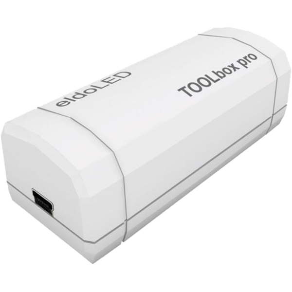 Il TOOLbox pro è un potente dispositivo di configurazione che fornisce il collegamento fisico tra il tuo PC e il tuo driver eldoLED. Utilizzato in combinazione con FluxTool o ShowMaster DMX, TOOLbox pro offre la possibilità di configurare i driver tramite LEDcode e DMX. L'adattatore TOOLbox fornisce alimentazione al driver durante la configurazione senza l'utilizzo della tensione di rete. L'adattatore TOOLbox protegge gli operatori dai rischi della tensione di rete e consente la massima efficienza attraverso l'utilizzo di maschere di configurazione.