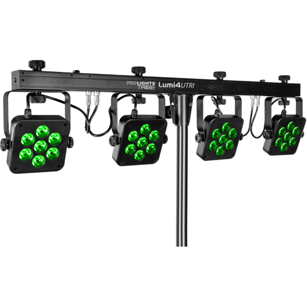 LUMI4UTRI è un wash LED portatile plug&play per spettacoli di luci in palchi e club. LUMI4UTRI è composto da una barra con 4 proiettori LED, ciascuno dotato di 7x3 W LED RGB / FC  ad alta potenza. La tecnologia LED consente di creare effetti sorprendenti con cambi di colore dinamici, effetti potenti e sincronizzati. L'alimentazione e l'unità di controllo sono contenute all'interno della barra, il sistema include anche un cavalletto, una comoda borsa da viaggio e un controller wireless a pedale. LUMI4UTRI può anche essere controllato in wireless tramite il ricetrasmettotore Wi-Fi USB opzionale in combinazione con Wifibox e l'app SmartColor per smartphone.
