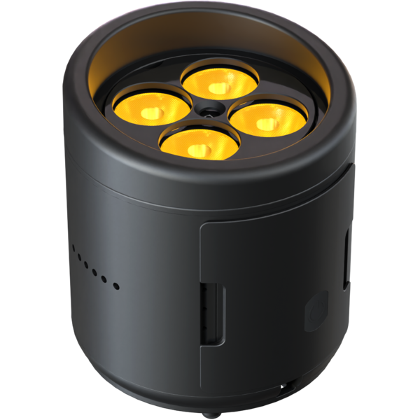 Uplighter/spot hybrid a batteria 4x20W, IP65, con sorgente LED RGB + Warm White, wireless o cablata