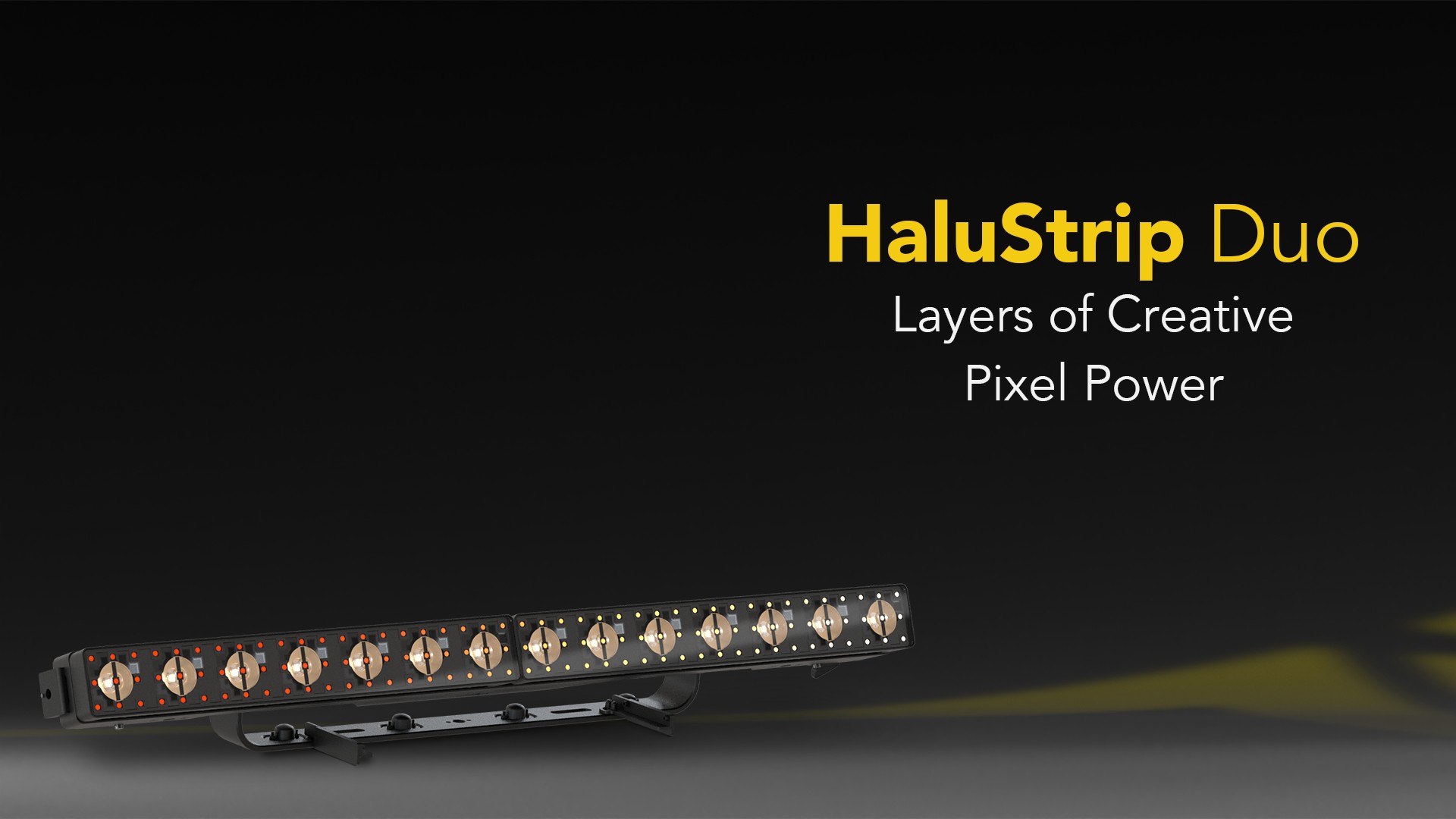 PROLIGHTS presenta HaluStrip Duo, una strip LED da un metro a doppio strato che unisce potenti beam in bianco caldo a una superficie RGB+WW ad alta luminosità all'interno di un telaio modulare. Pensata per palchi e TV, abbina fasci stretti a lunga gittata a contenuti video e strobe, con controllo a livello di pixel su entrambi gli strati.