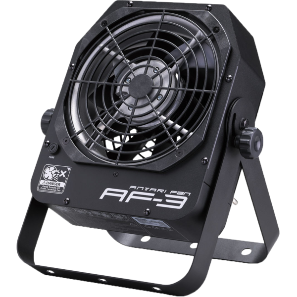 The AF-3 is a mini but all-purpose stage fan features 4 control options, linear output control, low power consumption, adjustable blowing directions, durable metal housing. In addition to the onboard DMX control and the manual knob, wire and wireless controllers are optional to cope with diverse needs. The attached bracket enables various output directions within 90 degrees while hanged or placed on the floor. Solid and handy design allows an easy carry.