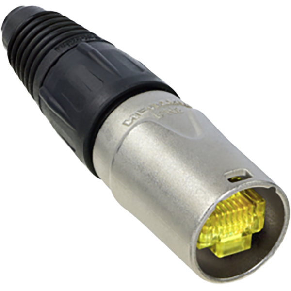 The etherCON cable connector carrier upgrades a conventional RJ45 connector to an extremely robust lockable solution.