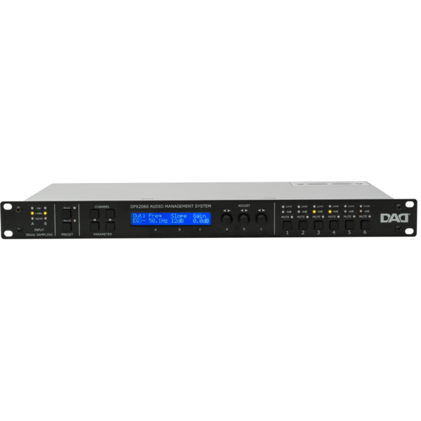• DAD DPX2060 è un processore digitale per il controllo di sistemi PA in applicazioni touring o in installazioni fisse, con 2 ingressi e 6 canali di uscita, a 32 bit (40 bit extended) floating point e convertitori analogici ad alte prestazioni a 24 bit.