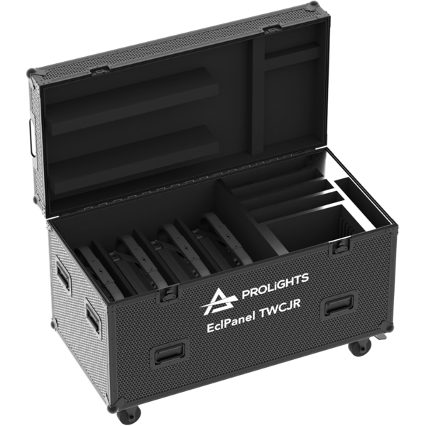 Flight case with internal compartments designed to contain 4 pcs of ECLPANELTWCJR.