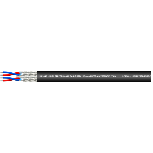 Cavo DMX, due coppie, impedenza costante, 2 paia di poli intrecciati, guaina esterna a diametro ridotto.