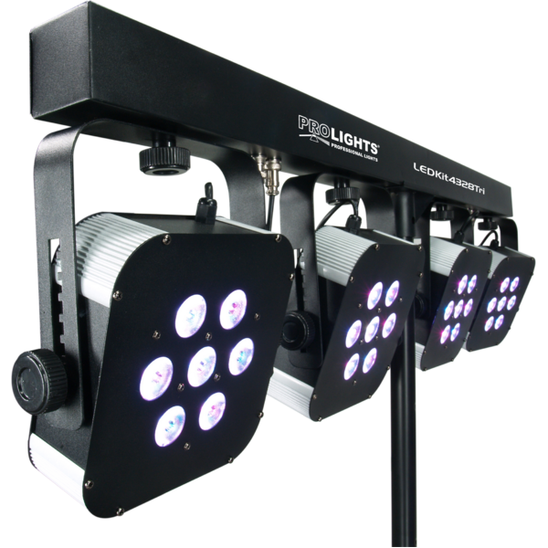 LEDKIT4328TRI is an efficient and portable LED washer-set for lighting shows reproduction in mobile stages and medium-sized environments. LEDKIT4328TRI is composed by a lighting bar with 4 colourchangers based on LED technology, each one equipped with 7 high-power Tri-color 3W LEDs. LED technology allows these luminaires to create striking effects with dynamic colour changes, powerful and synchronized operations. The power and the control unit is contained inside the light-bar, the system also includes a footswitch, a tripod stands and a comfortable travel bag.