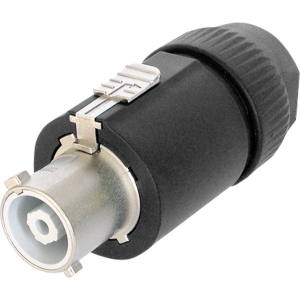 The 32 A powerCON is an extremely robust and reliable locking single phase AC appliance cable connector for high current capacity (32 A rated). It is conceived as a non-standardized 3 pole connection system without breaking capacity to serve the needs of high power distribution systems and supplies for professional audio and lighting equipment and installations. The connectors comprise of contacts for phase, neutral and protective earth (ground) conductors rated for currents up to 32 A and for voltages up to 250V.