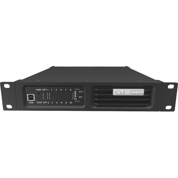The NOVACVT10 fiber converter offers a cost-effective way to convert optical signals to electrical signals, or electrical signals to optical signals, for connecting the sending card to the LED display. Delivering a full-duplex, efficient and stable data transmission that is not easily interfered with, this converter is ideal for long-distance transmission. The NOVACVT10 hardware design focuses on the practicality and convenience of the on-site installation. It can be mounted horizontally, in a suspended way, or rack mounted, which is easy, secure and reliable. For rack mounting, two CVT10 devices, or one CVT10 device and a connecting piece can be combined into one assembly that is 1U in width.