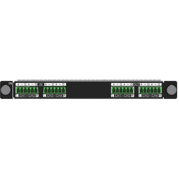 • Single channel: 4x phoenix audio inputs, 4x phoenix audio outputs