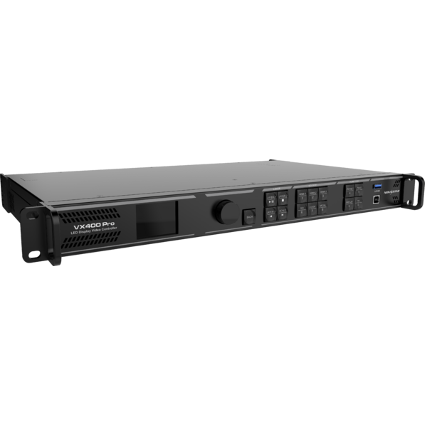 Il VX400 Pro è un controller che combina funzionalità di elaborazione e controllo video in un unico dispositivo. Dotato di 4 porte Ethernet, supporta tre modalità operative: controller video, convertitore in fibra e ByPass. Capace di gestire fino a 2,6 milioni di pixel, il VX400 Pro può fornire un output con una larghezza massima di 10.240 pixel e un'altezza di 8.192 pixel, rendendolo perfettamente adatto per controllare schermi LED ultra-larghi e ultra-alti sul posto.