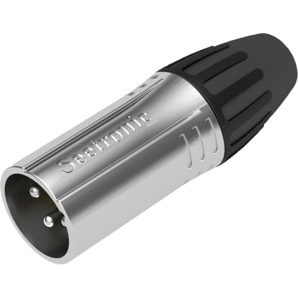Male 3-pin XLR connector with metal body, for a long life and high reliability.