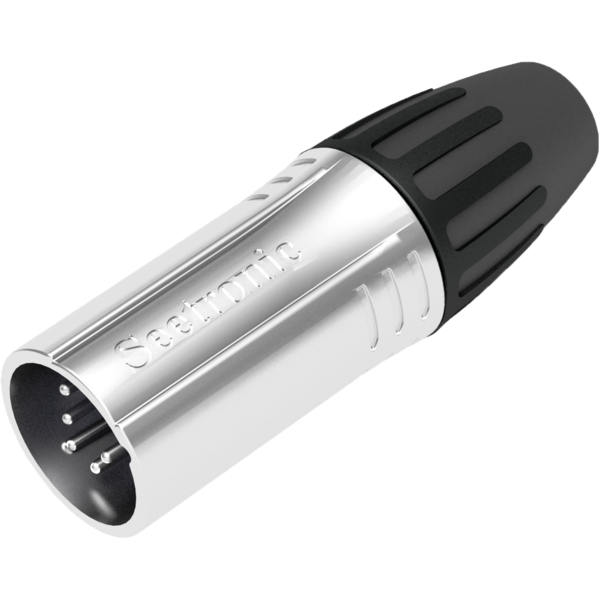 Connettore XLR 5-poli maschio con corpo in metallo, per una lunga durata e alta affidabilità.