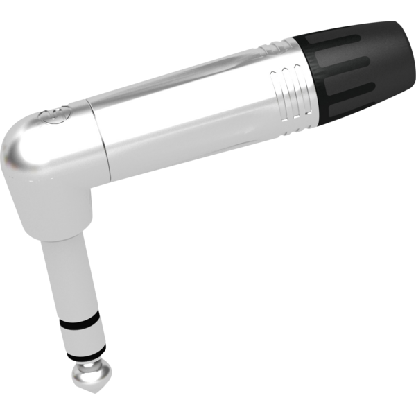 Spina jack Ø 6,35 mm - 1/4 ", ad angolo retto, 3 poli, di minimo ingombro (solo 13.5 mm di diametro) per la massima praticità operativa.