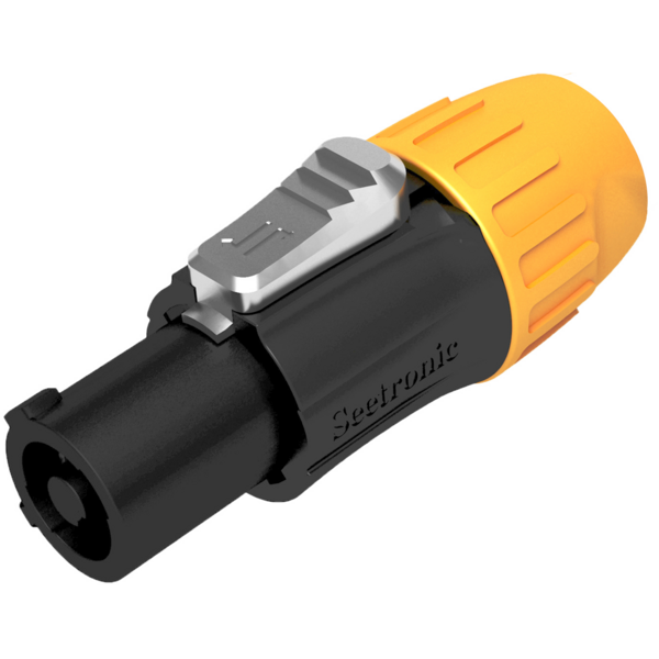 Connettore powerCON a 3 poli (linea, neutro, terra) per alimentare apparecchi che necessitano di una soluzione robusta ed un sistema di bloccaggio veloce e sicuro  "Quick lock".