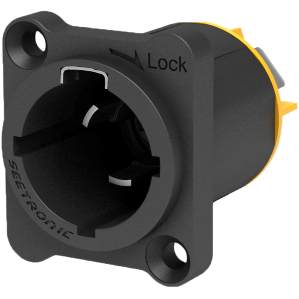 PowerCON TRUE 1 3-pole input panel connector with standard D-type frame (line, neutral, ground) to power devices that need a robust solution and a quick and safe "Quick lock" locking system.