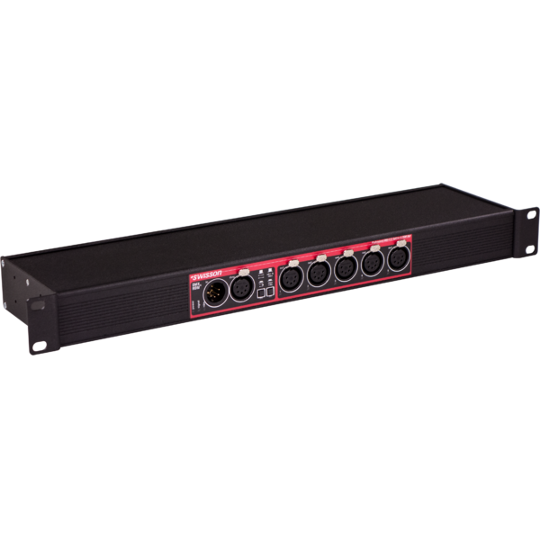 La serie Swisson XSR sono affidabili splitter DMX e RDM e booster che elaborano segnali DMX e RDM con un elevato livello di affidabilità per applicazioni professionali. L'XSR ha un alimentatore appositamente progettato che garantisce un funzionamento sicuro anche in condizioni di rete difficili. Tutte le porte sono individualmente isolate otticamente e ben protette da sovratensioni transitorie. Nella modalità "Solo DMX" tutti i dati non DMX vengono filtrati e viene generato un segnale pulito senza RDM o altri protocolli. Gli splitter XSR sono "individuabili" e sono visibili sui controller RDM. Ciò offre all'utente una panoramica migliore dell'installazione e aiuta nella risoluzione dei problemi.