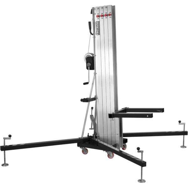 • Quattro stabilizzatori indipendenti e regolabili in altezza consentono l'assestamento dell'elevatore su superfici irregolari.