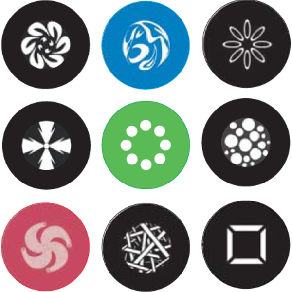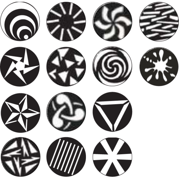 • Ruota Gobo No.2: 9 Gobos fissi metallici