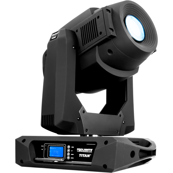 TITAN è un testa mobile Spot di ultima generazione, creato per combinare in un unico proiettore potenza, compattezza, performance e risparmio energetico. L'ottica di nuova generazione e lampada MSD Platinum 5R 189W permettono di generare un'emissione luminosa superiore a quella di proiettori con lampadina MSI575, riducendo i consumi di un fattore 1:2. TITAN offre un range di funzioni senza precedenti in proiettori di questa categoria, come zoom lineare 9°-31°, frost, Iris, focus, 14 colori, 18 gobos e prisma rotante.