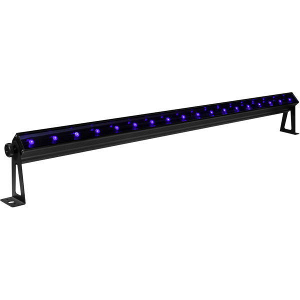 UVSTRIP18 è una barra LED UV ad alta potenza con 18 LED 3 W, concepita per sostituire i tradizionali proiettori basati su funzionamento con lampada fluorescente. UVSTRIP18 è un proiettore flessibile e user-friendly, grazie al controllo in DMX oppure in remoto con telecomando ad infrarossi, oltre che alle modalità automatiche e master/slave.